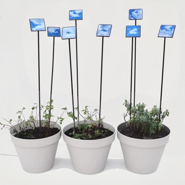 Installation : tiges métalliques(h=100cm) et photographies (format 9 x 9cm)